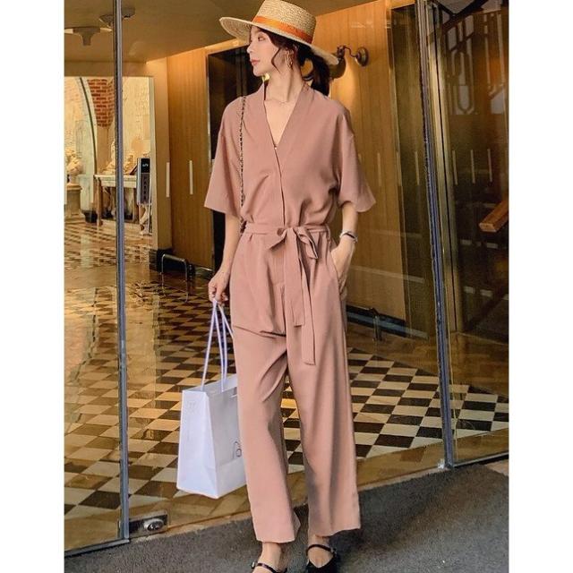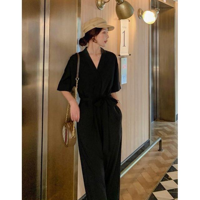 サロペット 20代 30代 40代 50代 コーデ オールインワン レディース ファッション 女性 夏服 秋 春 サロペットパンツ カシュクール 半袖 五分袖