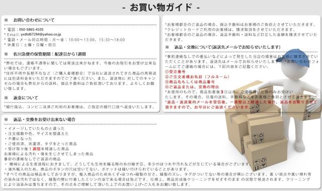 | ●サイズ詳細等の測り方はスタッフ間で統一、徹底はしておりますが、実寸は商品によって若干の誤差(1cm〜3cm )がある場合がございますので、予めご了承ください。 ●製造ロットにより、細部形状の違いや、同色でも色味に多少の誤差が生じます。 ●パッケージは改良のため予告なく仕様を変更する場合があります。 ▼商品の色は、撮影時の光や、お客様のモニターの色具合などにより、実際の商品と異なる場合がございます。あらかじめ、ご了承ください。 ▼生地の特性上、やや匂いが強く感じられるものもございます。数日のご使用や陰干しなどで気になる匂いはほとんど感じられなくなります。 ▼同じ商品でも生産時期により形やサイズ、カラーに多少の誤差が生じる場合もございます。 ▼他店舗でも在庫を共有して販売をしている為、受注後欠品となる場合もございます。予め、ご了承お願い申し上げます。 ▼出荷前に全て検品を行っておりますが、万が一商品に不具合があった場合は、お問い合わせフォームまたはメールよりご連絡頂けます様お願い申し上げます。速やかに対応致しますのでご安心ください。 | |