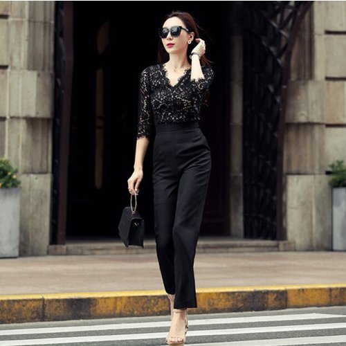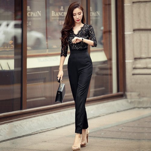オールインワン レディース 20代 30代 40代 50代 ファッション 女性 カジュアル 夏服 秋 春 ハイウエスト Vネック 七分袖 パンツ 春夏秋