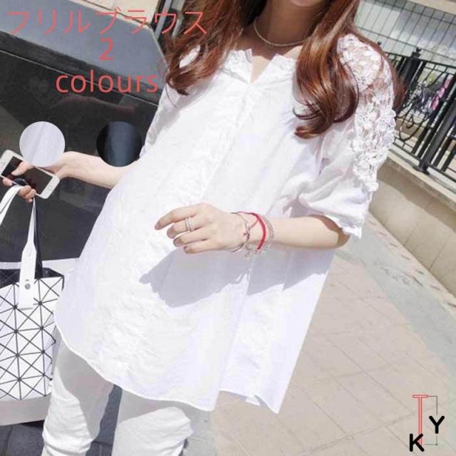 フリルブラウス レディース ブラウス シャツ トップス おしゃれ きれいめブラウス 七分袖 無地 体型カバー 20代30代