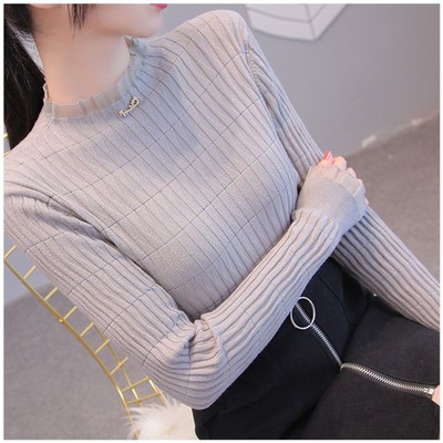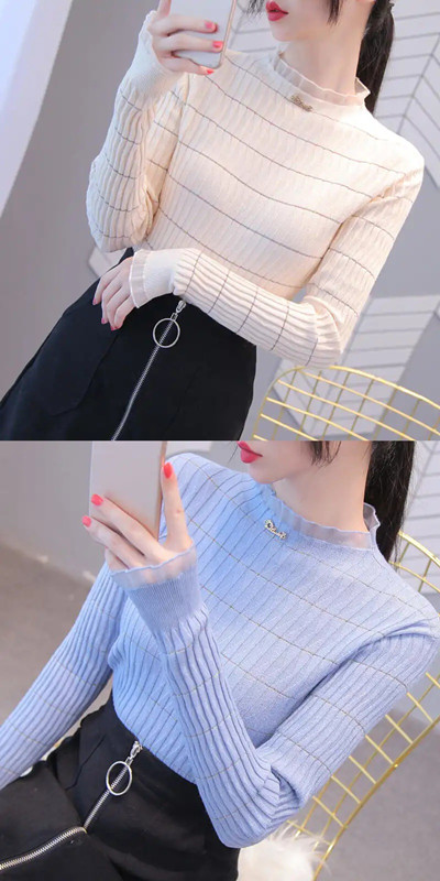 全7色×6サイズ!フリルハイネックニット リブニット レディース ニット セーター タイト フリル襟 ニットトップス インナー 秋冬 ボーダー リブ