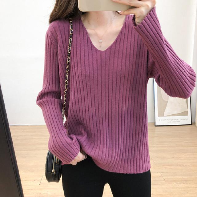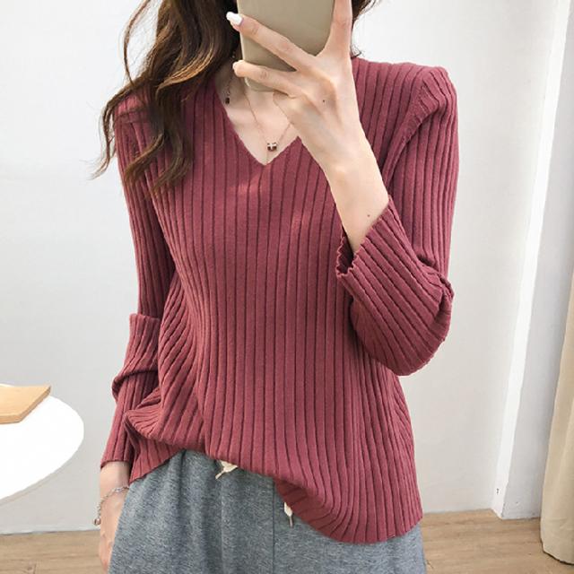 全10色!リブニット Vネックニット ニットセーター Vネックセーター レディース ニット セーター Vネック プルオーバー ニットトップス 秋冬 シンプル 無地 リブ ゆったり