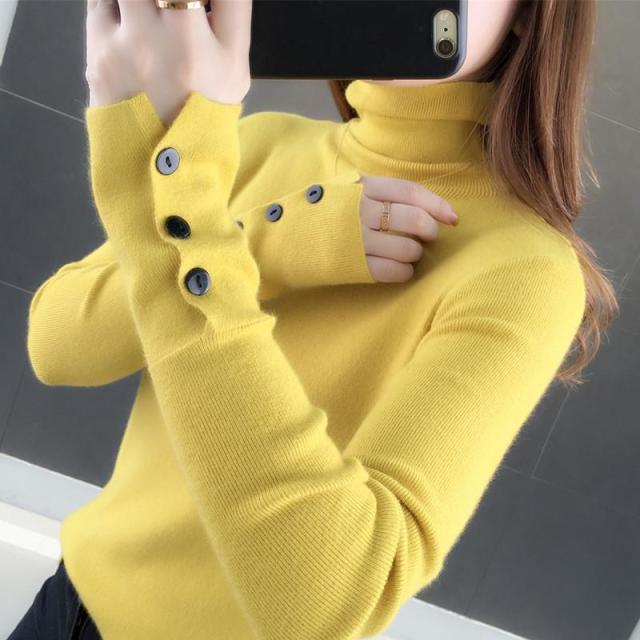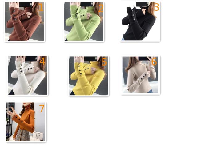 全7色!袖ボタン付き ニットソー ニット セーター レディース くしゅくしゅ ハイネック ニットトップス プルオーバー セーター 無地 長袖 ニットトップス 秋冬 シンプル おしゃれ インナー 高伸縮