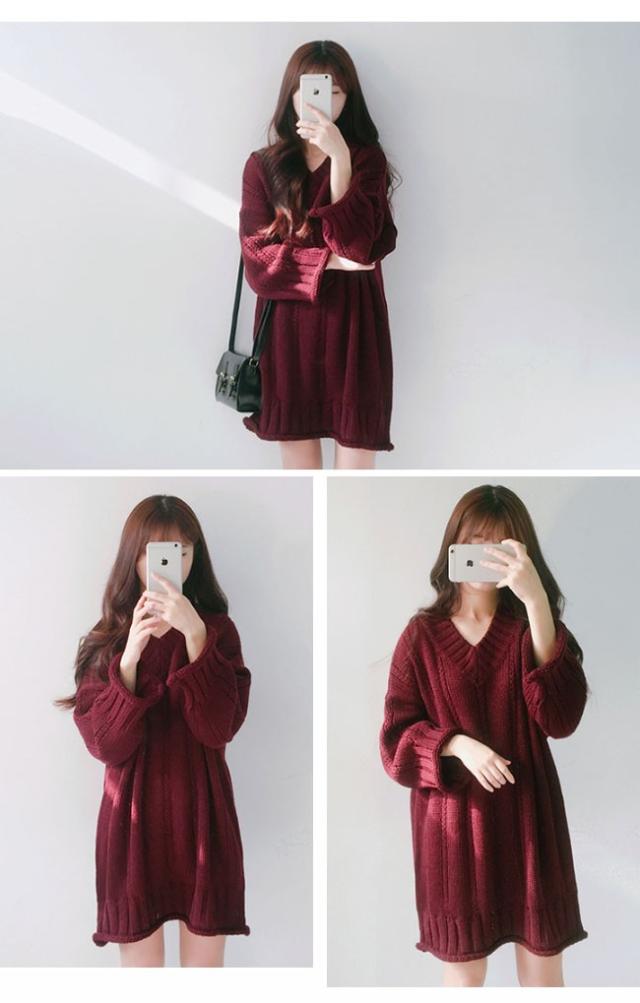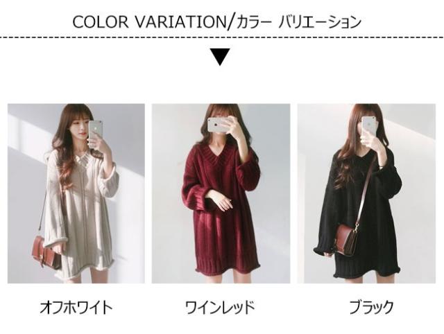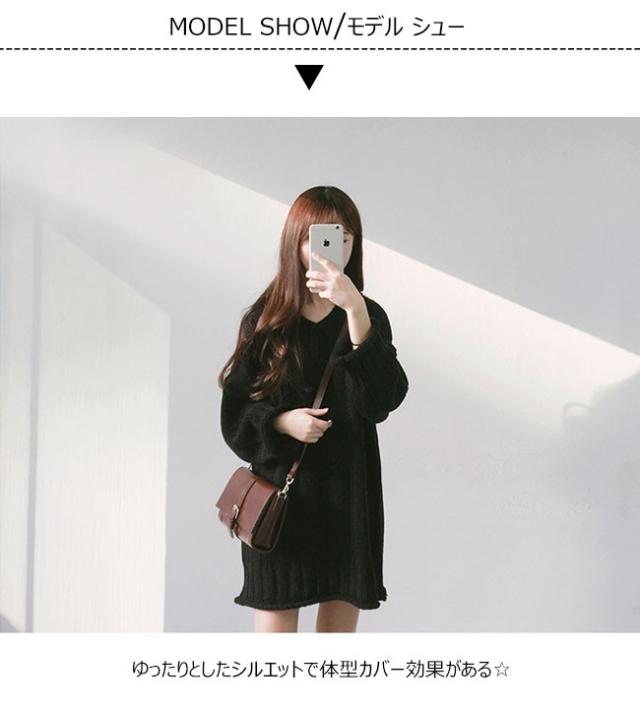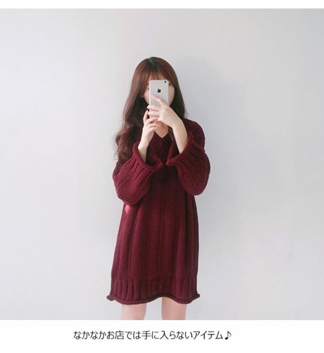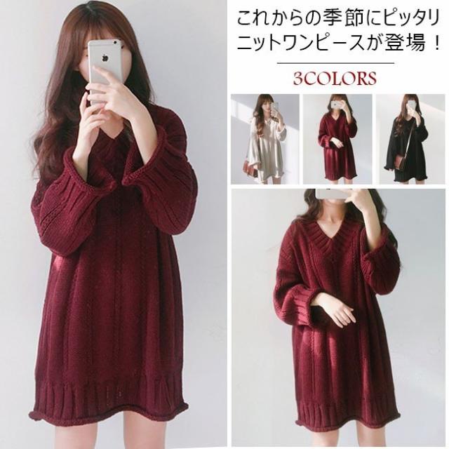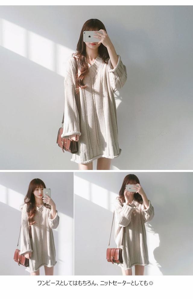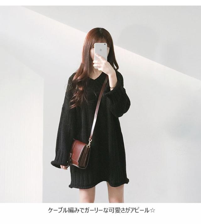 秋冬ニット ニットワンピース ニットセーター レディース 無地 長袖 ミディアム丈 Vネック ゆったり ケーブル編み 2020秋冬新作