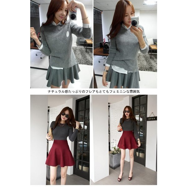 レディース ミニスカート ニット フレアスカート ウエストゴム ショート Aラインスカート ハイウエスト 女性用 ボトムス 春秋物