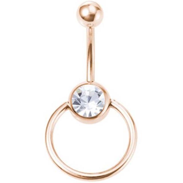 綺麗なピンクゴールドメッキしたキャプティブビーズリングとバナナバーベルを合体させたユニークな臍ピアス。
