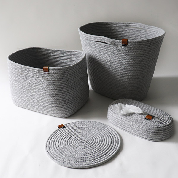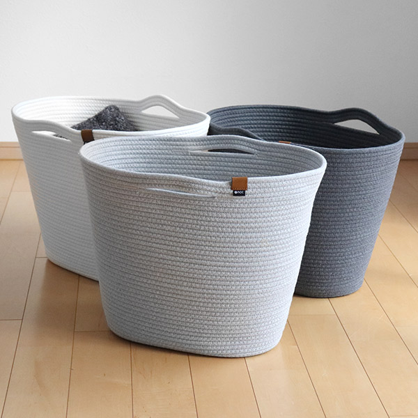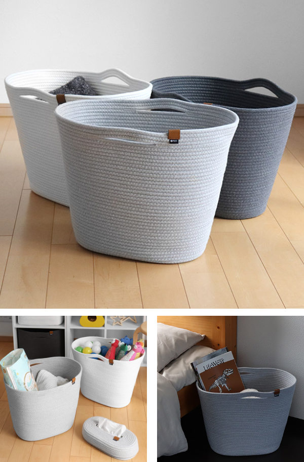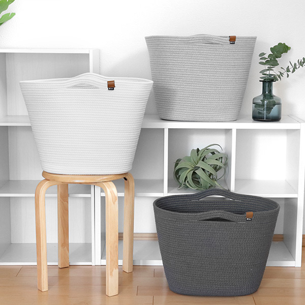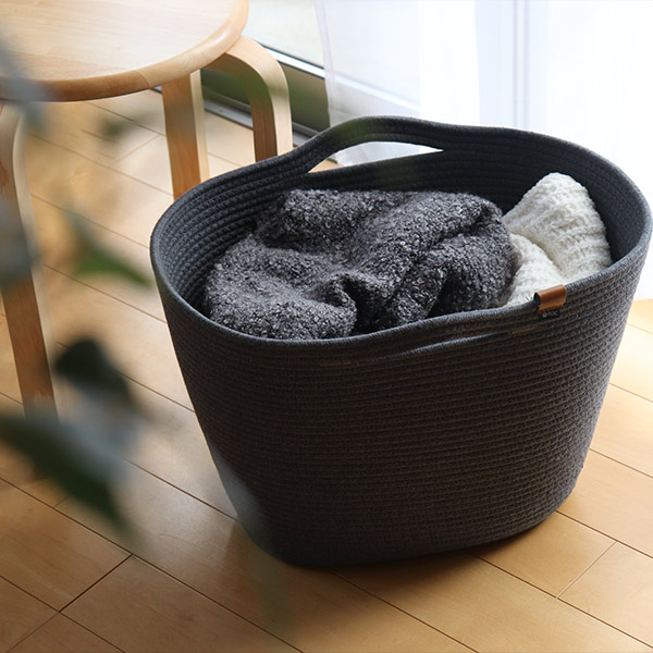 厚さ約8mmの一本のロープからなされた形の、上品でやさしい印象ながらもしっかりとした安定感のあるバスケットです。片付けることをいつもより楽しくさせてくれるデザインで、暮らしをおしゃれに彩ります。
