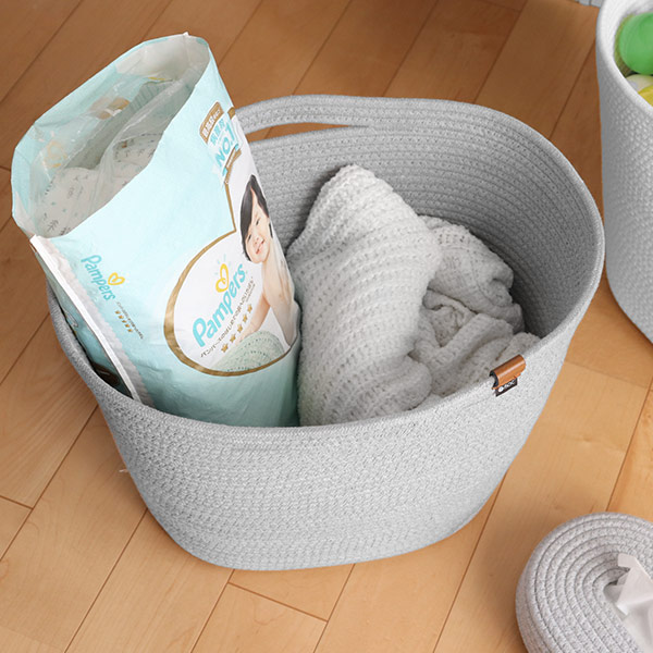 コットン製なので、中に入れるものを傷つけません。ストールやブランケットなど布製のものを入れても引っ掛けてほつれるという心配がないので、安心して収納できます。赤ちゃんの洋服やおむつ収納にもおすすめです。
