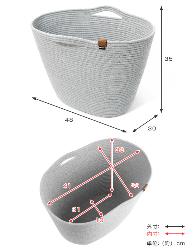 | サイズ | 外寸:約 幅48×奥行30×高さ35(cm) 内寸:約 幅31×奥行19×高さ33(cm) ロープ厚さ:約8mm |