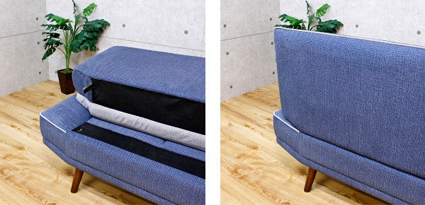 背もたれと座面は差し込むだけなので簡単に組み立てることが出来ます。また、脱着式の背もたれなのでお部屋の模様替え等でソファを移動する際は持ち運びも簡単です。