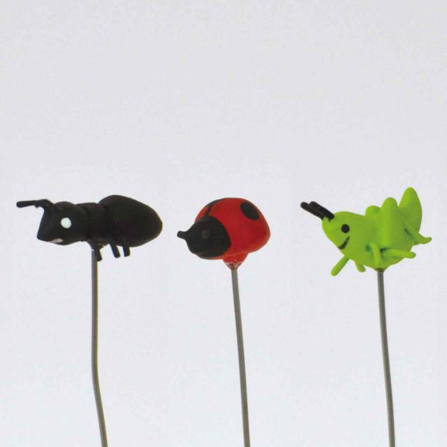 アリ、テントウムシ、バッタのピックが1本ずつ入った、ミニピック3本セットです。レジンで作られたとても小さいピックなので、小さなポットやプランターを飾るインドアガーデニングにもピッタリです。