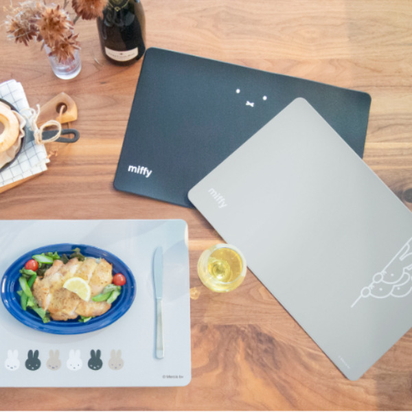 ミッフィーの愛らしいイラストが目を引くランチョンマットです。ホワイト、ブラック、グレーの大人カラーをベースにしたシックなデザインで、食卓をおしゃれに演出。テーブルに汚れや傷が付くのを防いでくれます。