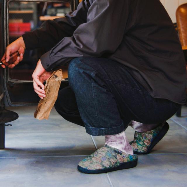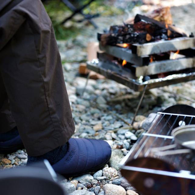 キャンプやBBQなどのアウトドアで愛用される冬用サンダル。