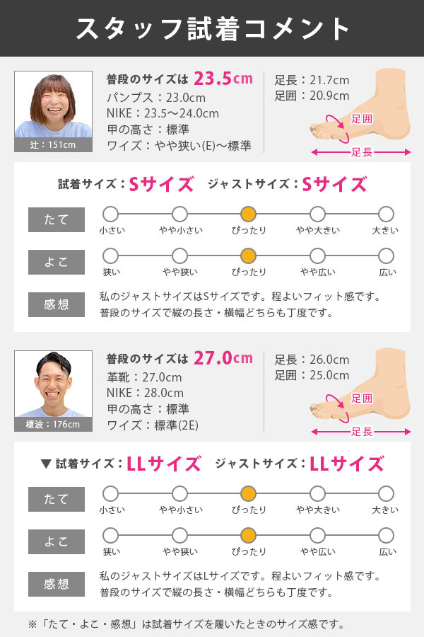 取り扱いサイズ:S[23.5-24cm] M[24.5-25cm] L[25.5-26cm] LL[26.5-27cm] 3L[27.5-28cm]