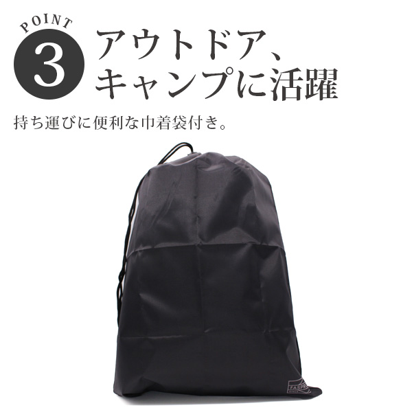 持ち運びに便利な巾着袋付きなので、アウトドア、キャンプにも最適。