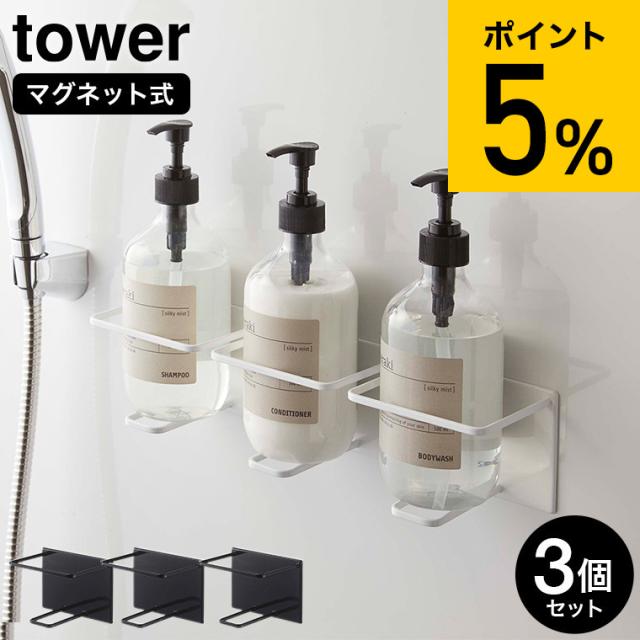 tower 山崎実業 送料無料 タワー マグネットバスルームチューブ&ボトルホルダー L 3個セット ホワイト ブラック 5508 5509 お風呂 浴室 壁面 収納 磁石 壁 シャンプーボトル ボトルラック ボディソープ タワーシリーズ マグネット