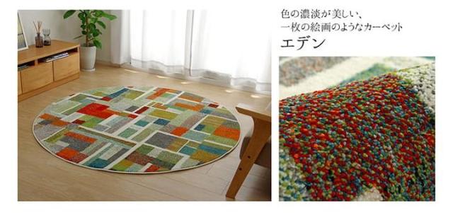 イケヒコ トルコ ウィルトン 織り カーペット ギャベ ラグ マルチ 約160cm 円形 丸 抗菌防臭 消臭 へたりにくい エデン