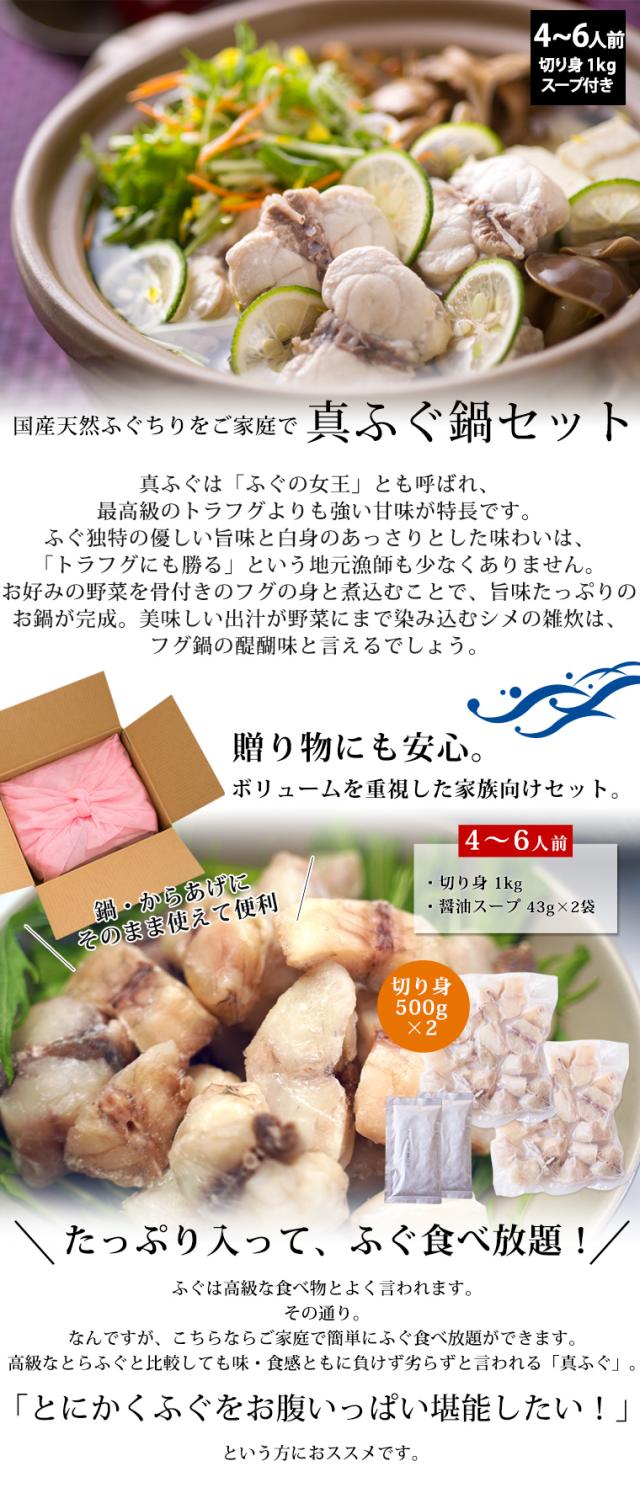真ふぐ鍋セット(醤油スープ付き) 4〜6人前 島根県浜田産 マフグ ふぐちり てっちり ギフト 送料無料(北海道・沖縄を除く)