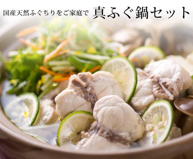 | 栄養成分表示 | 【真ふぐ鍋】エネルギー84kcal/たんぱく質18.9g/脂質0.4g/炭水化物0.0g/食塩相当量0.2g(100g当たり) 【醤油スープ】エネルギー135kcal/たんぱく質10.5g/脂質4.7g/炭水化物12.9g/食塩相当量12.5g(100g当たり) |