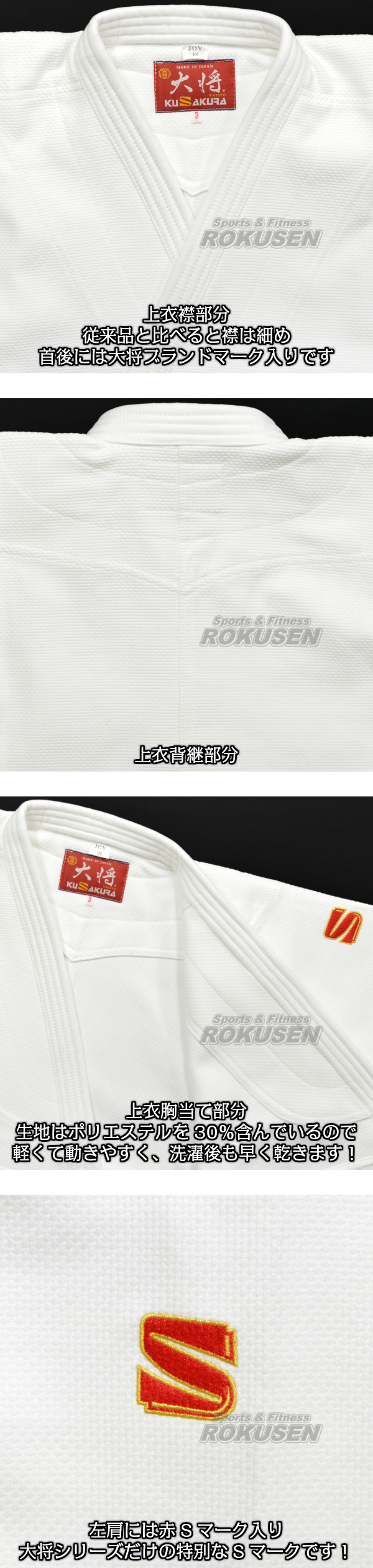 左肩と左足には他の九櫻柔道着とは違う大将シリーズだけの特別なSマークが入っています。