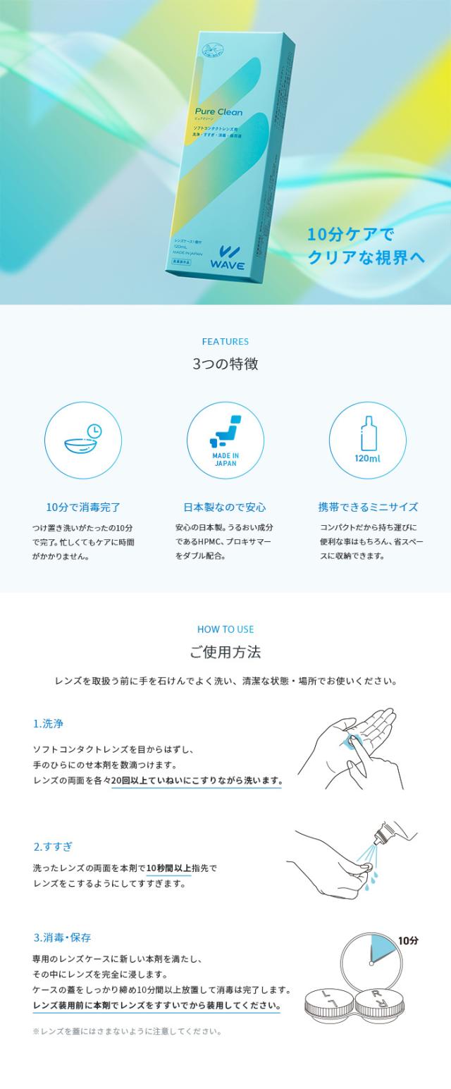 ピュアクリーン 120ml 1箱(お試し10日分) WAVE ウェイブ 洗浄液 コンタクト コンタクトレンズ ケア用品