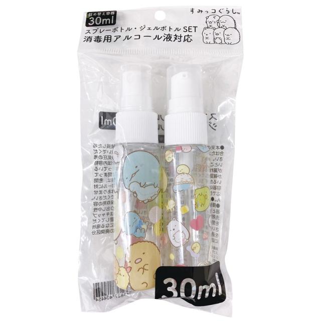 すみっコぐらし 携帯用 スプレーボトル・ジェルボトル (2本入り) 30ml容器 ぬいぐるみ アルコール消毒対応 (K-1910-C)