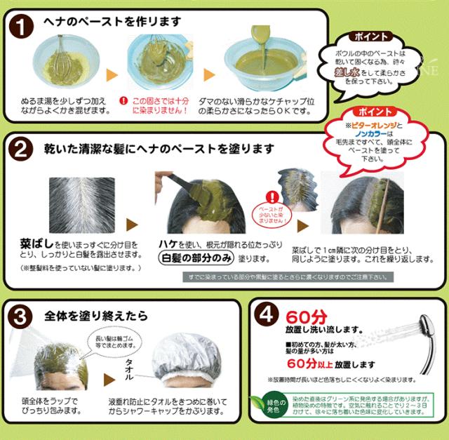 オレンジブラウンやビターオレンジと組み合わせて二度染めすると本格的な黒に染まります。二度染め用のインディゴブルーの使用量のめやす:根元・部分染め70g〜80g、ショート全体100g〜。放置時間は1時間以上。※初めての方や硬くて太い髪質の方は、表示よりも粉の量を多め・放置時間を長めにしてください。ヘナに暗みが足りないときに適量をミックスしてお使いいただくこともできます。 |