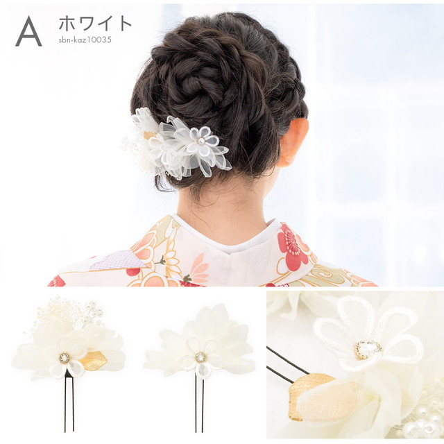 髪飾りはUピン式ですので、着物に合わせ自由な組み合わせでご使用いただけます。