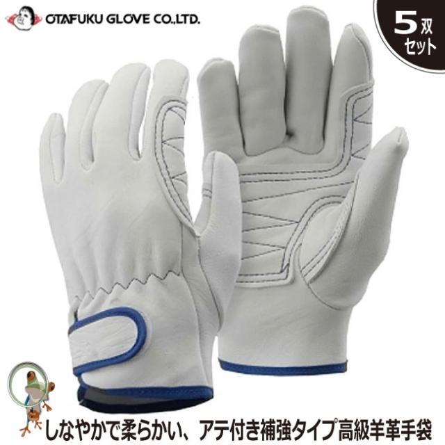 手袋 革手袋 おたふく シープスキン アテ付きマジック K-434 特価5双セット 羊革 通気性 革手袋 手首マジック フィット 柔らかい 高級羊革