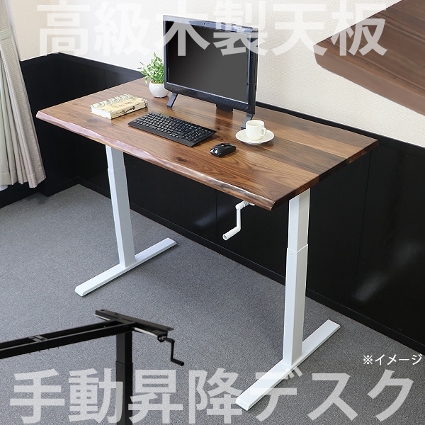 選べる天板エッジと脚色!高級木製天板付き手動昇降デスク!