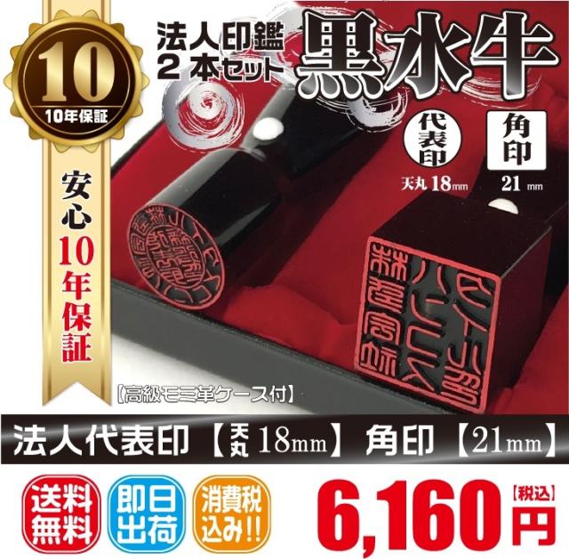 代表印18mm(天丸)角印21mm はんこ 黒水牛 印鑑 会社設立 法人印鑑