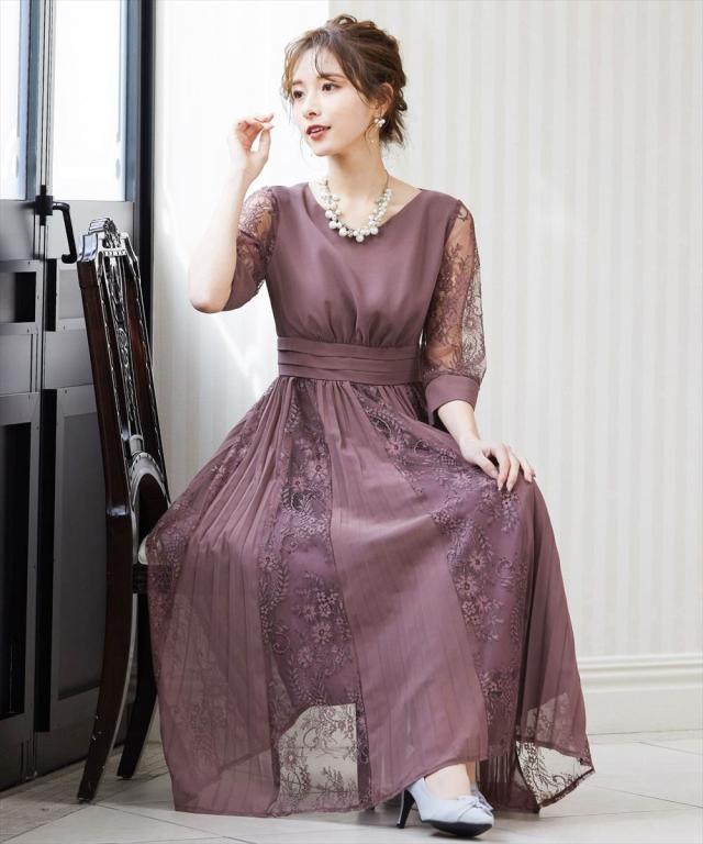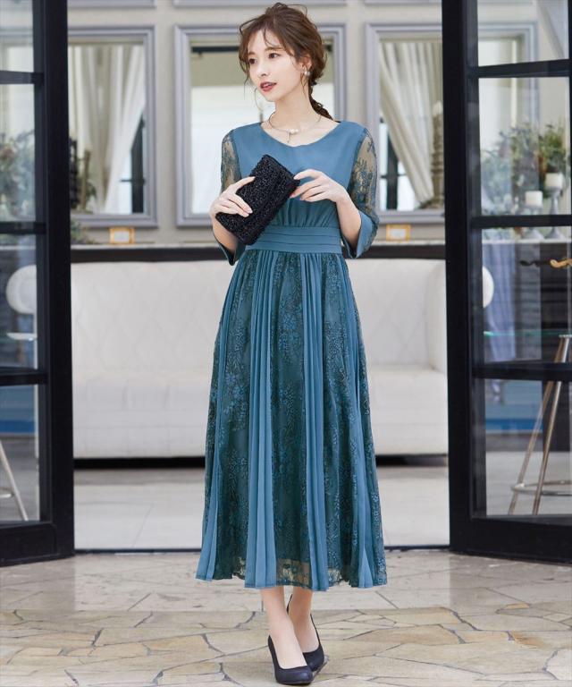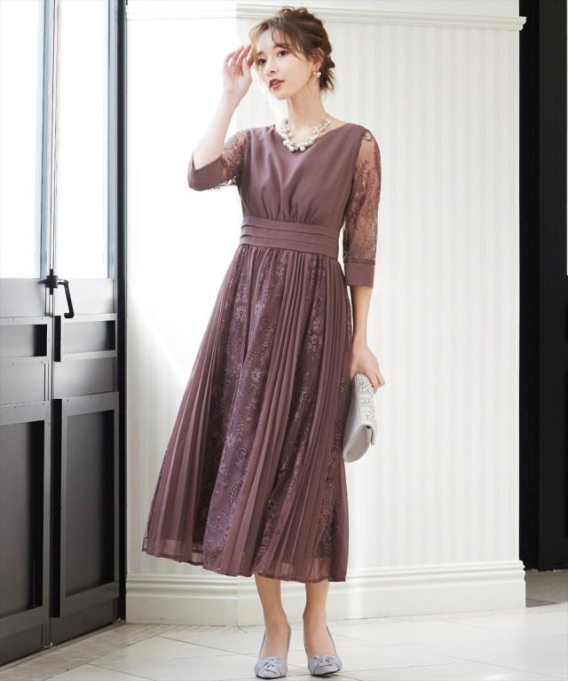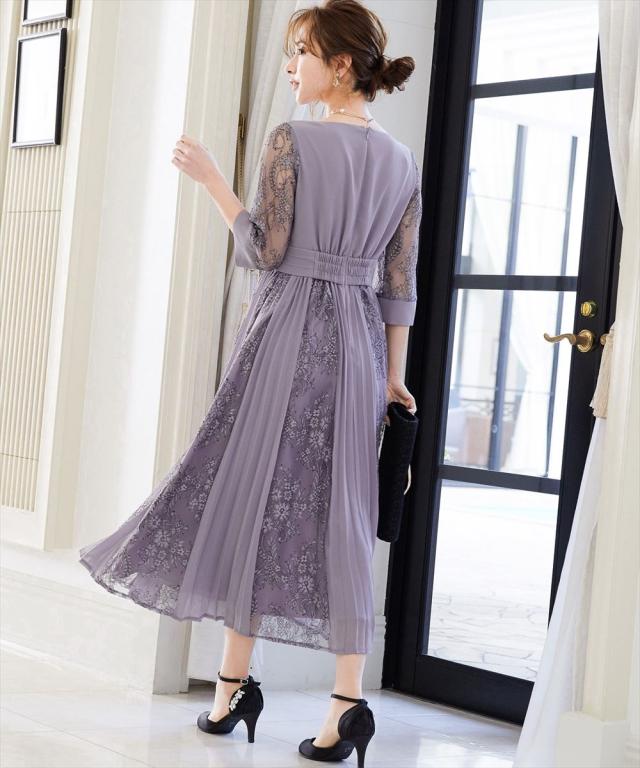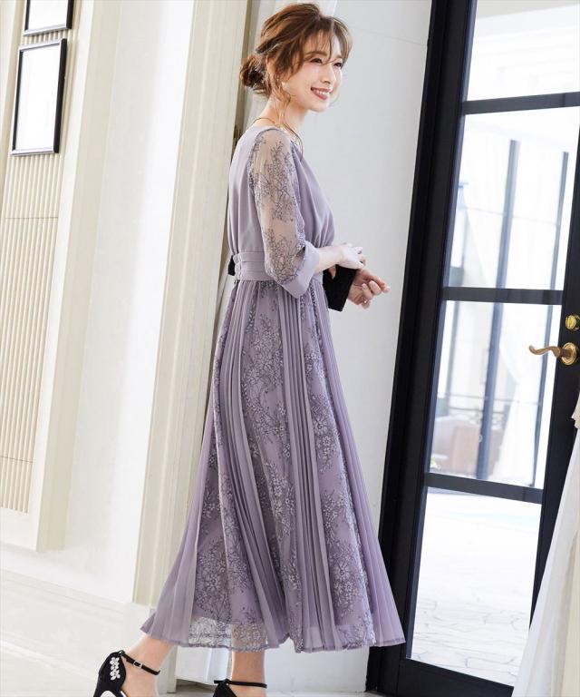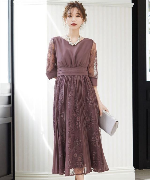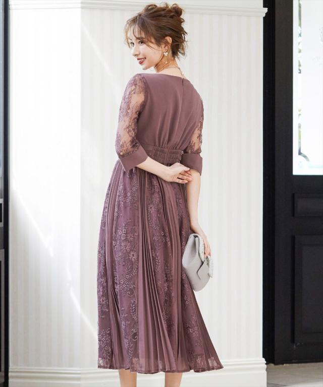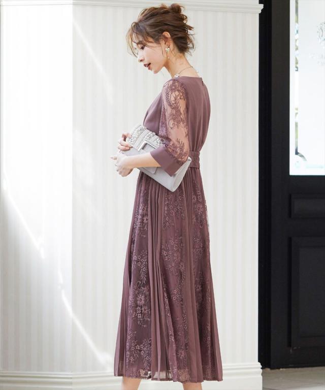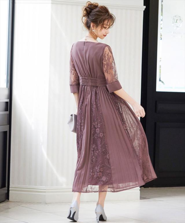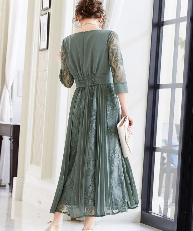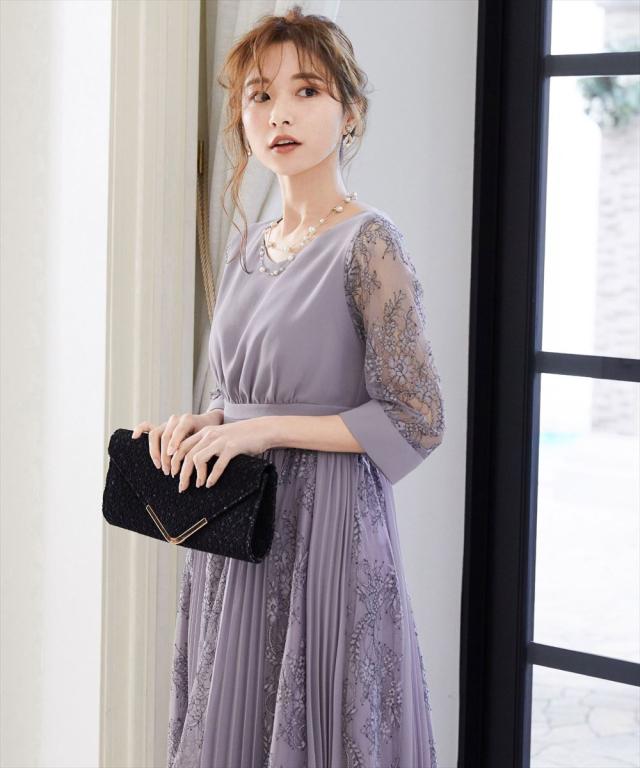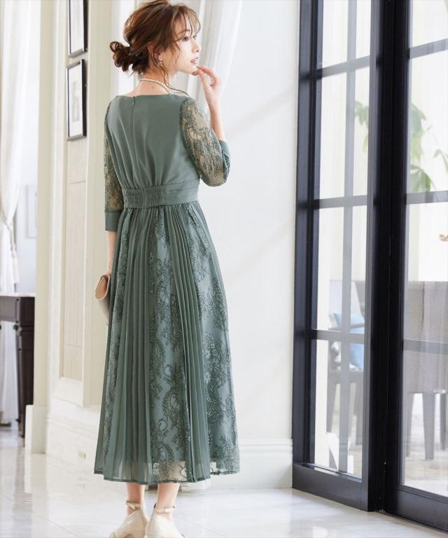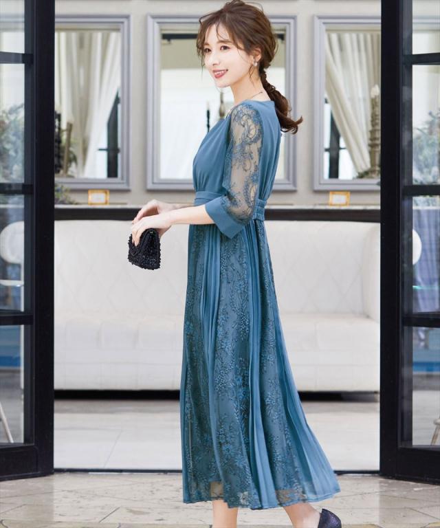 程よい透け感のレーススリーブが二の腕をさりげなくカバー。