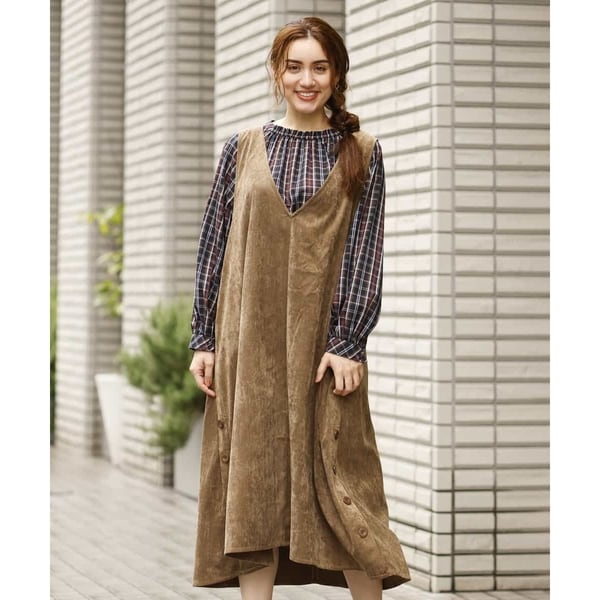 ソフトな落ち感が綺麗な、細畝のコーデュロイ素材を使ったジャンパースカート。