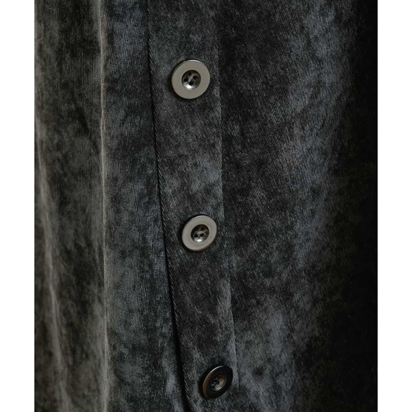 深いVネックとサイドのボタンディティールが縦長&すっきりに見せてくれます。