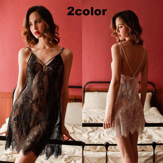 ●効果:セクシーなパリジェンヌをイメージしたレース使いが美しいスリップワンピース。背中の紐がオシャレに魅了します。