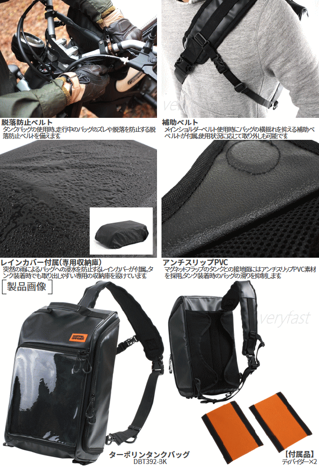 DOPPELGANGER バイク用 バッグ タンクバッグ ライダーズタンクバッグ ライダー バイク乗り ドッペルギャンガー ターポリンタンクバッグ DBT392-BK ブラック