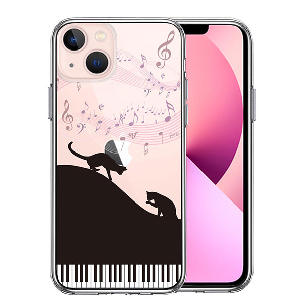 iPhone13 ケース ハードケース ハイブリッド クリア カバー ピアノ シルエット猫 ブラック アイフォン スマホケース