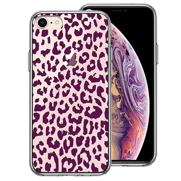 iPhone8 ケース ハードケース ハイブリッド クリア カバー ヒョウ柄 豹 レオパード柄 単色 パープル アイフォン スマホケース