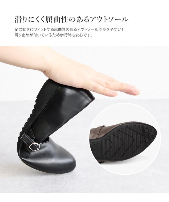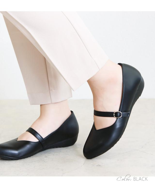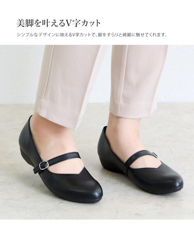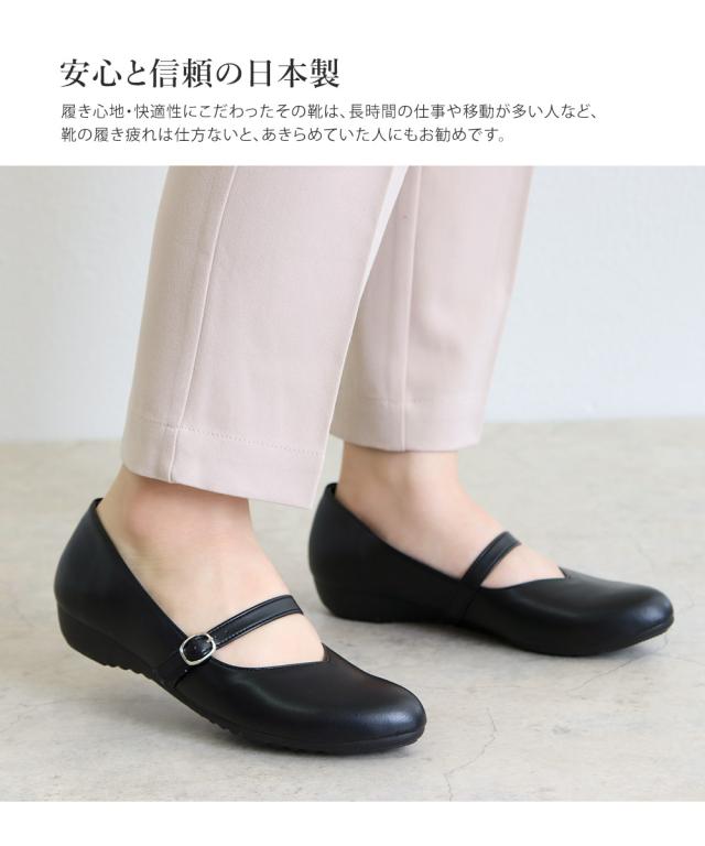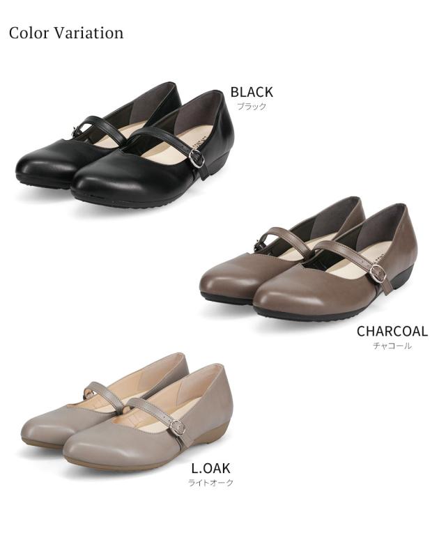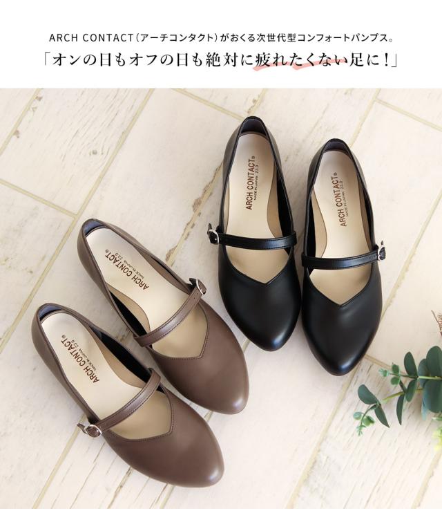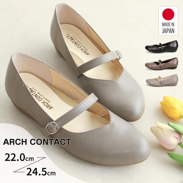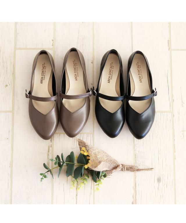 パンプス 痛くない ローヒール ストラップ パンプス 歩きやすい 日本製 婦人靴 レディース アーモンドトゥ ARCH CONTACT アーチコンタクト 靴 レディース 黒 ブラック チャコール ライトオーク ウェッジソール 小さいサイズ 大きいサイズ 春 夏 秋 冬 39280