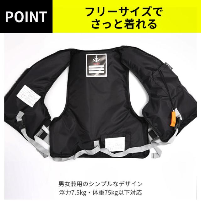 | 商品説明 | ・フリーサイズの大人用簡易型フローティングベストが登場。 ・釣りやマリンレジャーを安全に楽しむための必須アイテム。 ・前ファスナーと前バックルを締め、股下のセーフティーベルトを2ヶ所カチッと留めるだけの簡単仕様。 ・もしもの時に安心な笛付き!笛はジャケット左内側専用ポケットに収納ができるので邪魔にならない。 ・汚れても薄めた中性洗剤でブラッシングしてすすぎ洗いができるので清潔を保てる。 ・浮力7.5kg・体重75kg以下対応。 |