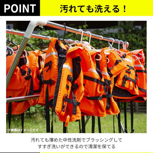 | 注意点 | 【浮力:7.5kg/24 時間(株式会社ファインジャパン・工場テスト数値)】 ※ただし、運輸省の形式承認を受けた救命胴衣ではありませんので、小型船舶の備品としては認められません。 【適応体重:75kg以下】 ※必ず体に合ったサイズを着用して下さい。 ※お子様に着用させる場合は大人が正しく着用させて下さい。 ※本商品は法定備品(日本小型船舶検査認定品)ではありません。用途に合わせてご使用下さい。 ※着用する際は、前のファスナーを必ずしめ、セーフティーベルト(股ベルト)やバックルなどの止め具を必ず装着してください。正しく装着していなかったり、ベルトにたるみがあると、転落時に脱げてしまったり、水面上に顔を確保できなくなり大変危険です。 ※子供用のフローティングベストについても、サイズと浮力以外はすべて成人用のものと仕様は同じです。大人の方が正しく着用させてください。また、フローティングベストを着せておけば安全というわけではありません。必ず大人の方がそばで見守るようにして下さい。 ※浮力は低下していきます。買い替えは2〜3年を目処にして下さい。 ※発泡素材の浮力材は、着用している際の“屈曲”や収納時の“折り曲げ”や“つぶれ”により、徐々に発泡材の気泡が壊されて、浮力が低下していきます。また、摩耗や損傷のひどいものは、強度も低下していることが考えられるため、買い替えて下さい。 ※丸めたり、折り曲げたり、重いものを上に乗せたり、踏んだり、座ったりしてはいけません。 ※発泡剤は70度程度で変形収縮することがありますので、熱湯、アイロンやスチーム、乾燥機は禁です。その他の火のそばにも置かないで下さい。 ※ドライクリーニングは不可です。 ※洗濯は商品の洗濯表示の方法に従っておこなってください。基本的には手洗い陰干しです。 ※フロート(浮力材)がセットインされているものは、真水か汚れがひどいときは中性洗剤を薄めた溶剤でブラッシングし、よくすすぎ洗いをして下さい。 ※水や汗でぬれたまま長時間放置したり、漂白剤入りの洗剤を使用することはお避け下さい。 ※すすぎ、脱水は十分に行ない、形を整えてすぐにハンガー陰干しをして下さい。 ※タンブラーによる乾燥は商品が極端に縮んだり生地をいためる原因となるのでお避け下さい。 ※カメラやモニターの性質により、画像と実物の色の違いがある場合がございますのでご理解願います。 |