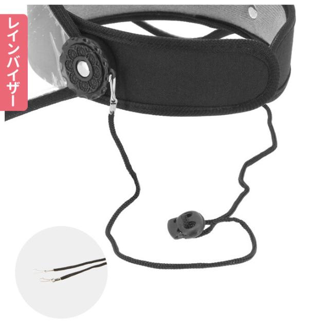 | 使用方法 | 【レインハット】 [あご紐調節方法] キュッと絞って調節できます。 【レインバイザー】 [あご紐取付け方法] 内側から引っかけて装着してください。 |