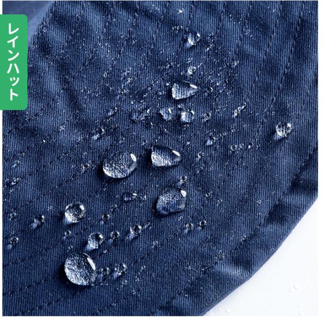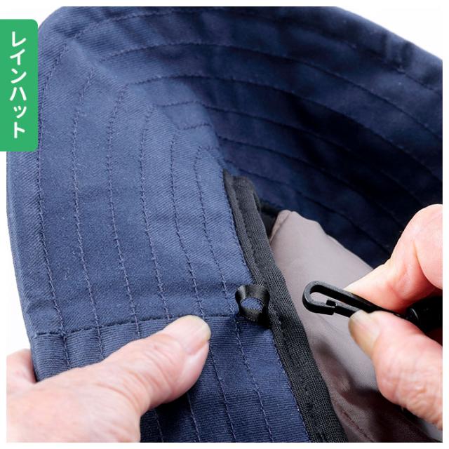 | 素材 | 【レインハット】 表生地:ツイル綿100% (表:はっ水加工/裏:PVCラミネート) 裏生地:ポリエステル100% 【レインバイザー】 ツバ:ポリカーボネート バンド:ポリエステル |