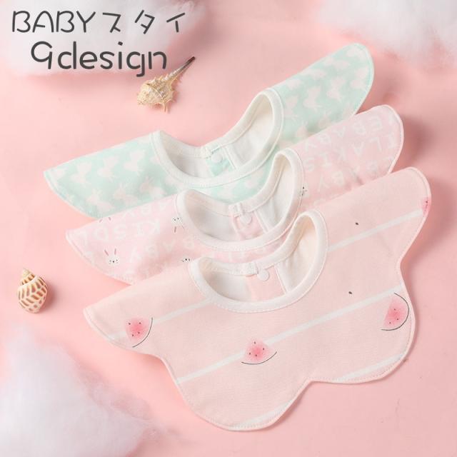 スタイ よだれかけ ベビー 赤ちゃん 乳児 女の子 女児 ドーナツ型 エプロン スナップボタン 通気性 吸水性 デザイン豊富 イ