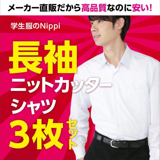 長袖 ニットシャツ 3枚セット A体 B体 ポリエステル90% キュプラ10% カッターシャツ 形態安定 ノーアイロン 抗菌消臭 中学生 高校生 学生服 メンズ