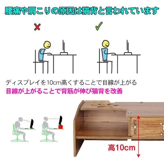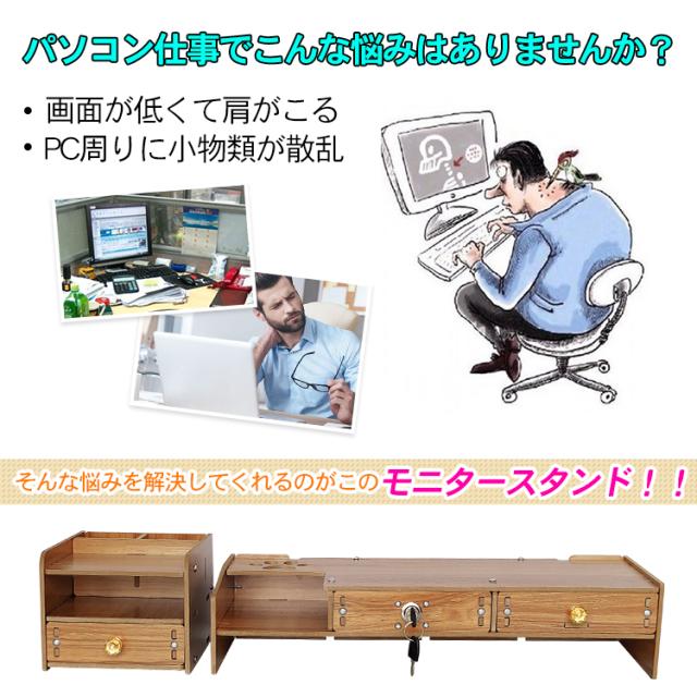モニター台 卓上 パソコンデスク パソコン台 引き出し付き 机上台 収納 モニター スタンド パソコン PC ラック おしゃれ 小物 棚 在宅 勤務 リモート テレワーク オフィス 事務 キーボード収納 省スペース