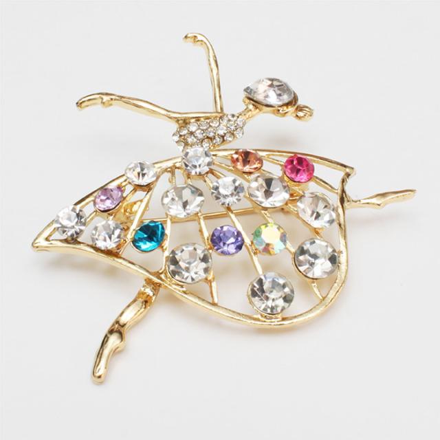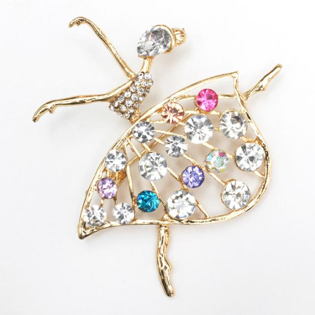 バレエ 雑貨 プレゼントabb-br3 カラフルビジュー バレリーナ ブローチ 小物 ギフト 発表会 プチギフト キーホルダー グッズ バレエ用品 かわいい ゴールド ラインストーン 格安 通販 イーバレリーナ