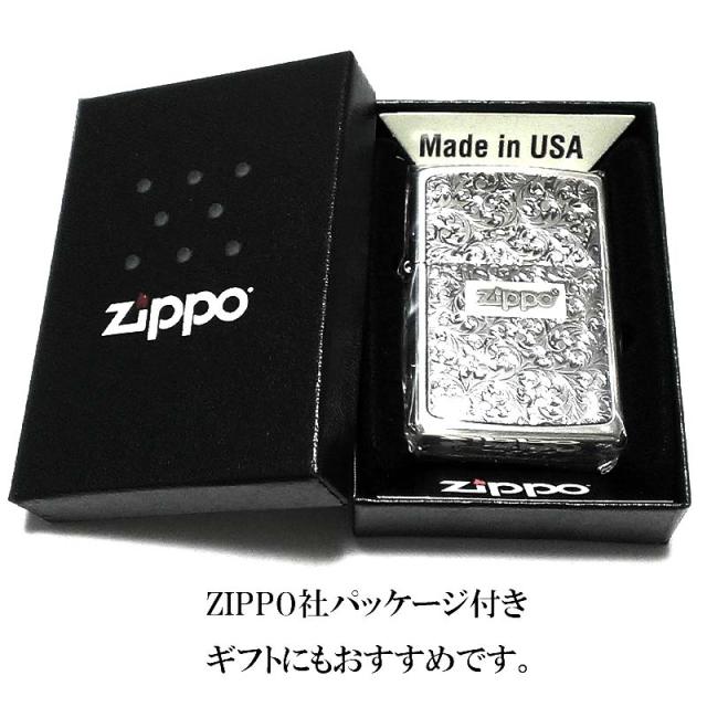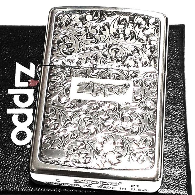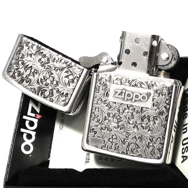 ZIPPO ライター 唐草 ZIPPOロゴ ジッポ シルバーイブシ 彫刻 ツートーン鍍金 おしゃれ プレート貼り 銀 高級 かっこいい メンズ ギフト プレゼント