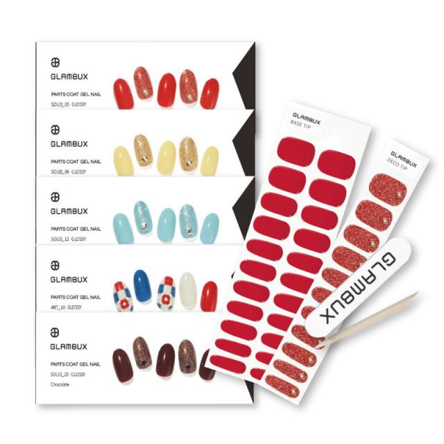 GLAMBUX パーツコート セルフ ジェル ネイル シール 硬化ジェルネイルシール Base22p Deco11p グラムバックス