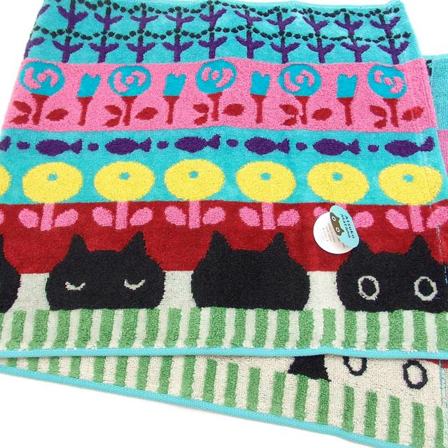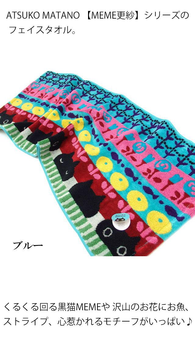 フェイスタオル MEME更紗 黒猫 マタノアツコ またのあつこ 俣野温子 綿100% 34×75cm 手拭き 日本製 今治 手ぬぐい 猫柄 猫雑貨 猫グッズ